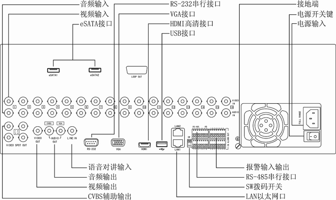 支持16个SATA接口,2个eSATA盘库,可用于录像和备份;